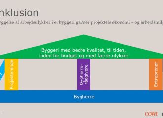 Det kan betale sig for bygherre, projekterende og entreprenører at planlægge og gennemføre ulykkesforebyggende tiltag fra begyndelsen af et byggeprojekt. Det har vi påvist i en stor kvantitativ undersøgelse blandt bygherrer, projekterende og entreprenører i forbindelse med forsknings- og udviklingsprojektet “Arbejdsmiljøøkonomi i et bygherreperspektiv”. Projektet er gennemført af COWI og NIRAS i 2016-2019 med…