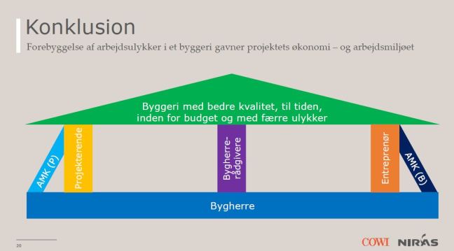 Det nævnes bl.a., at “for hver krone virksomheder investerer i sikkerhed og sundhed, får de gennemsnitligt to tilbage”. Dette er en af konklusionerne i projektet.